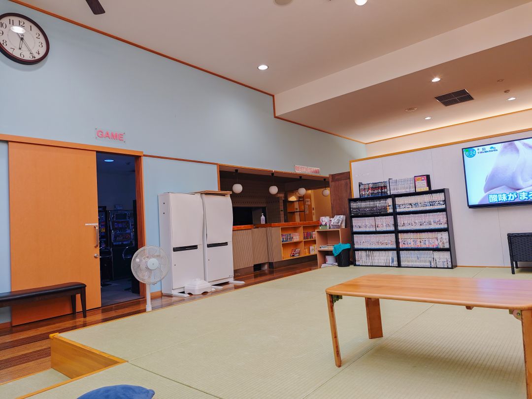 お風呂から上がったら畳の小上がりで一息付けます。テレビがでかでかと配置されていて、こういったところも銭湯感あふれる情緒ですね。