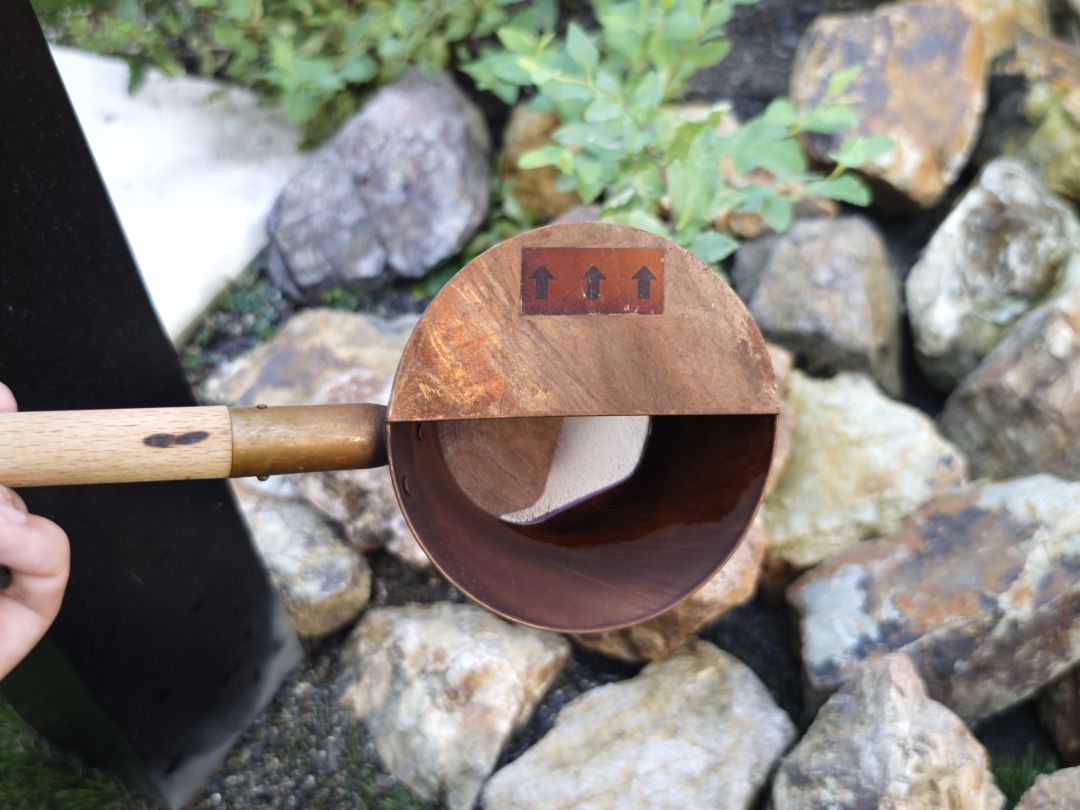 ちなみにロウリュ用のラドルがお洒落で、注ぎ口は三つ穴になっているので適度に注ぎやすい形状になっています。