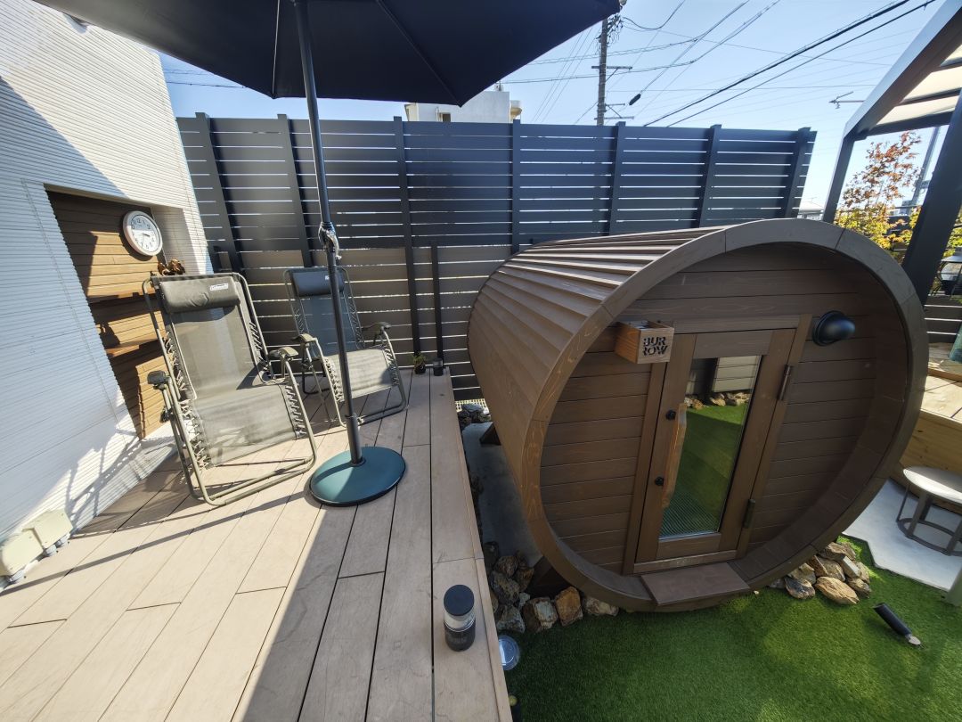 4人まで利用可能な樽型バレルサウナは、ASPサウナ全室で最も広い部屋になっています。一番写真映えする部屋でもあると思います。