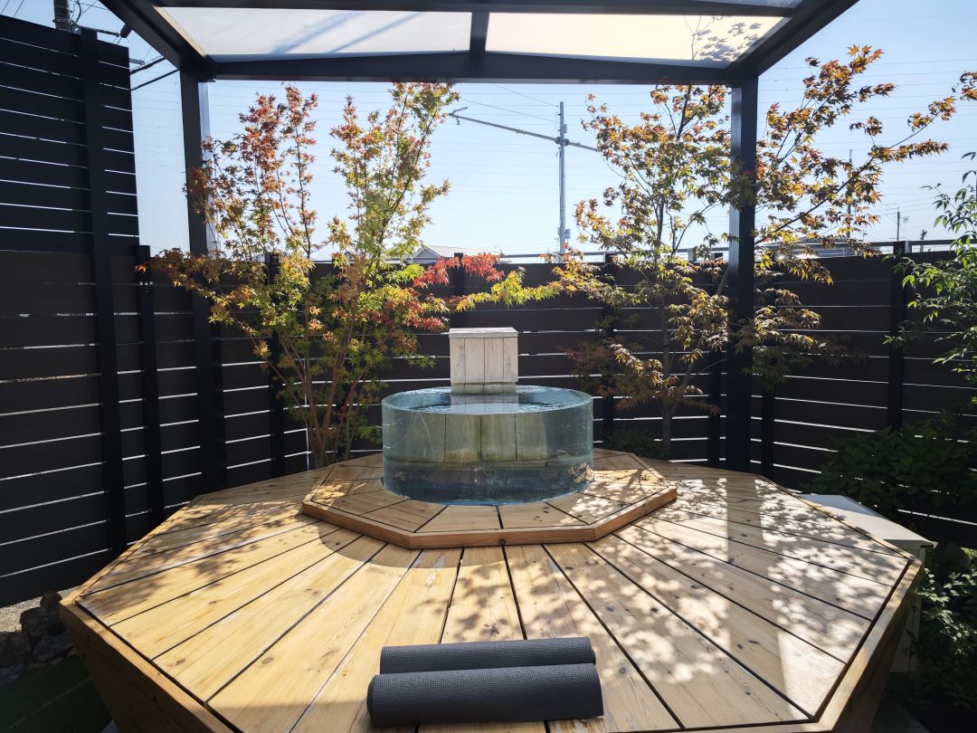 木の床にはヨガマットが置いてあり、水風呂から出たらそのままゼロ距離で外気浴ができます。