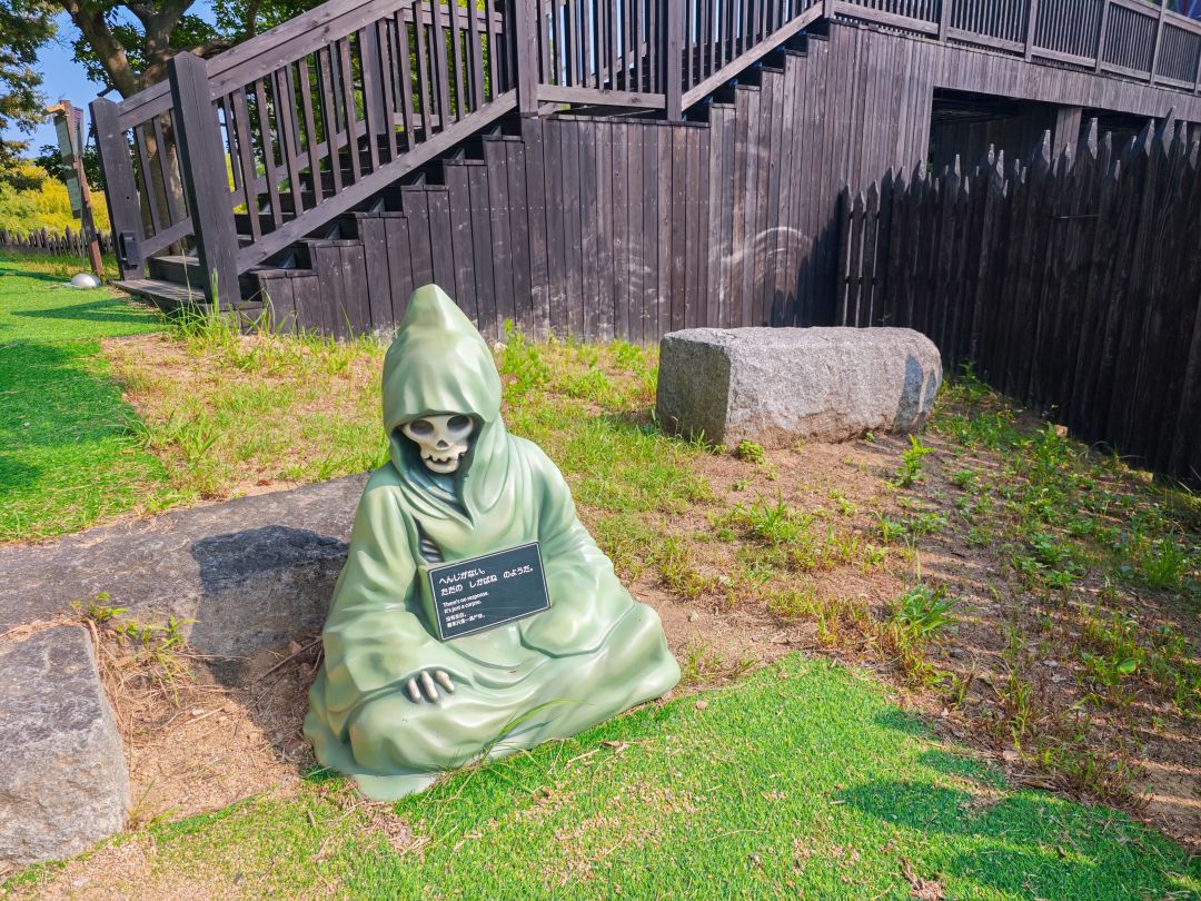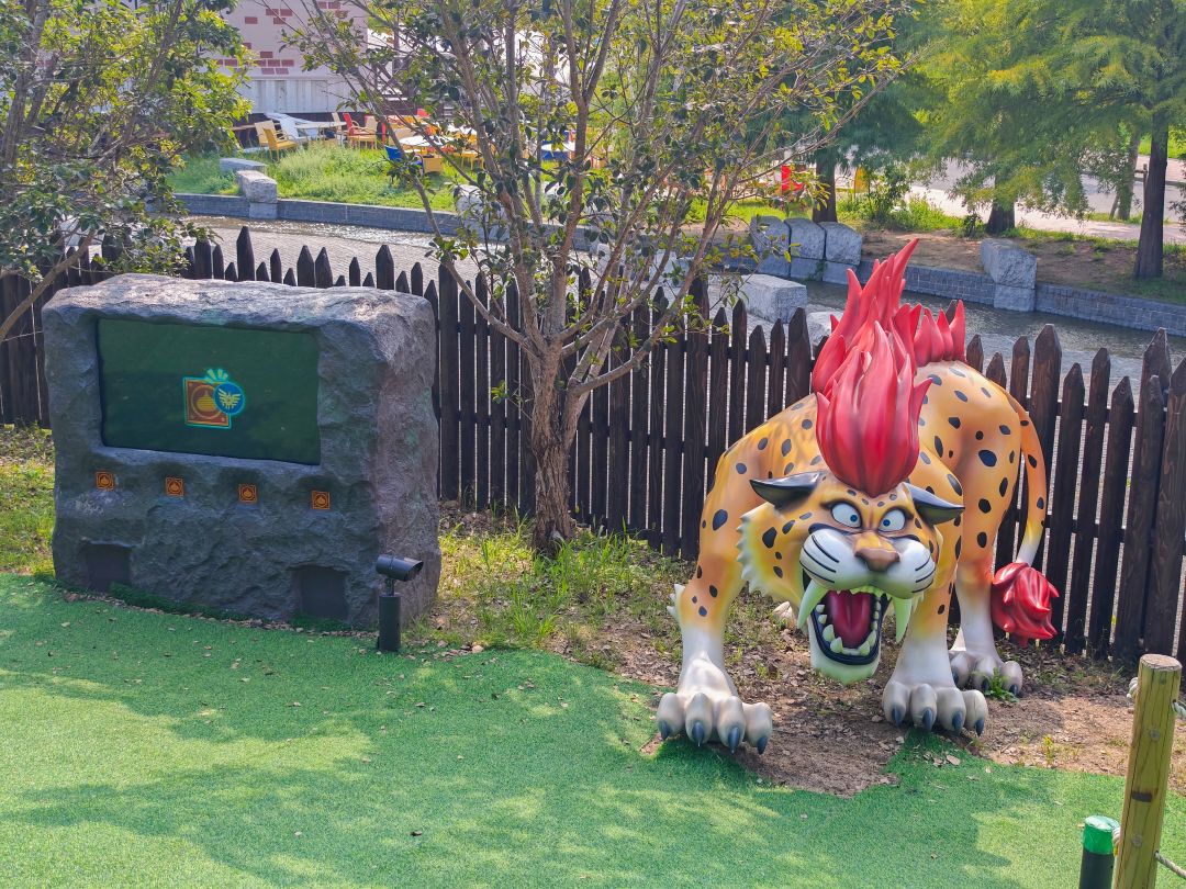 各種モンスターのオブジェがあり、撮影スポットでありアトラクションの進行に必要な仕掛けでもありますね。