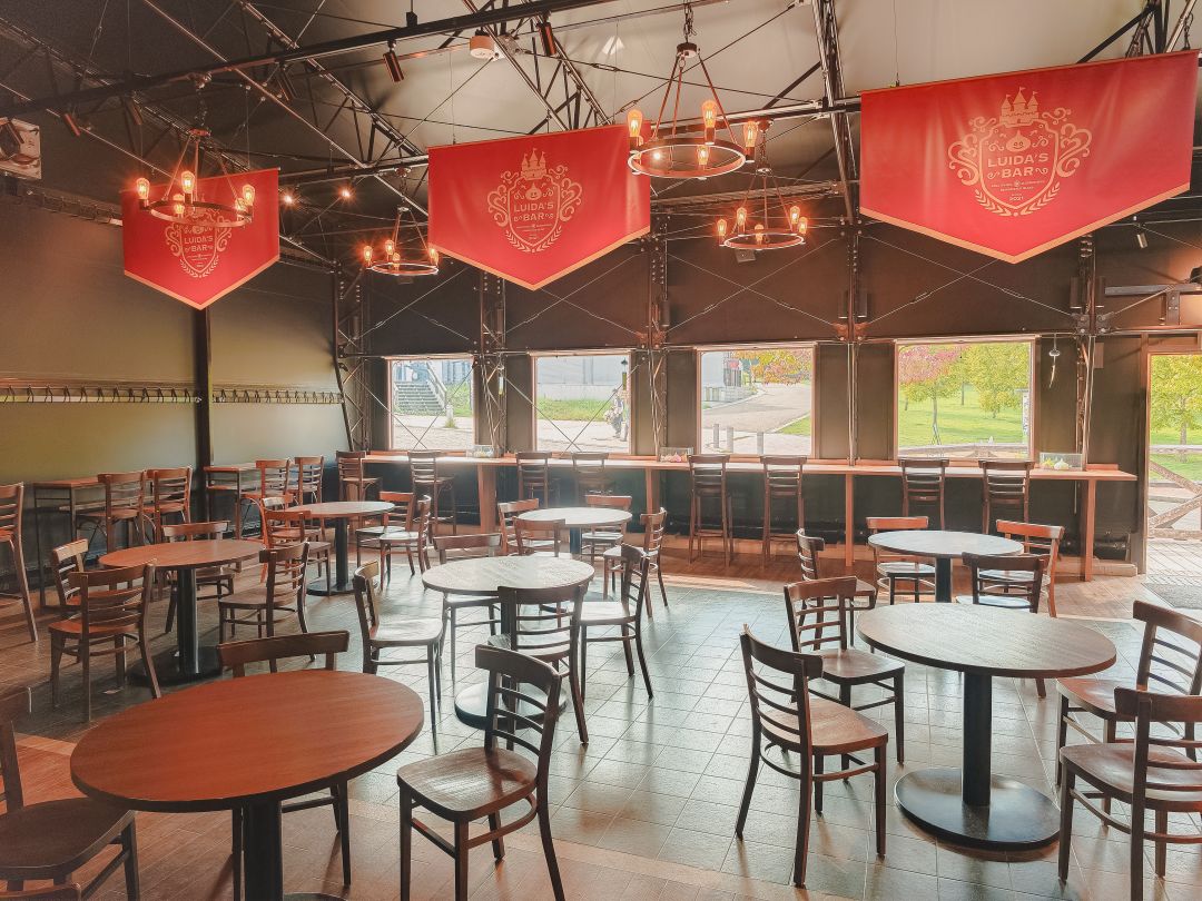 レストランとお土産屋のルイーダの酒場。ドラクエ関連グッズや食事を楽しめます。