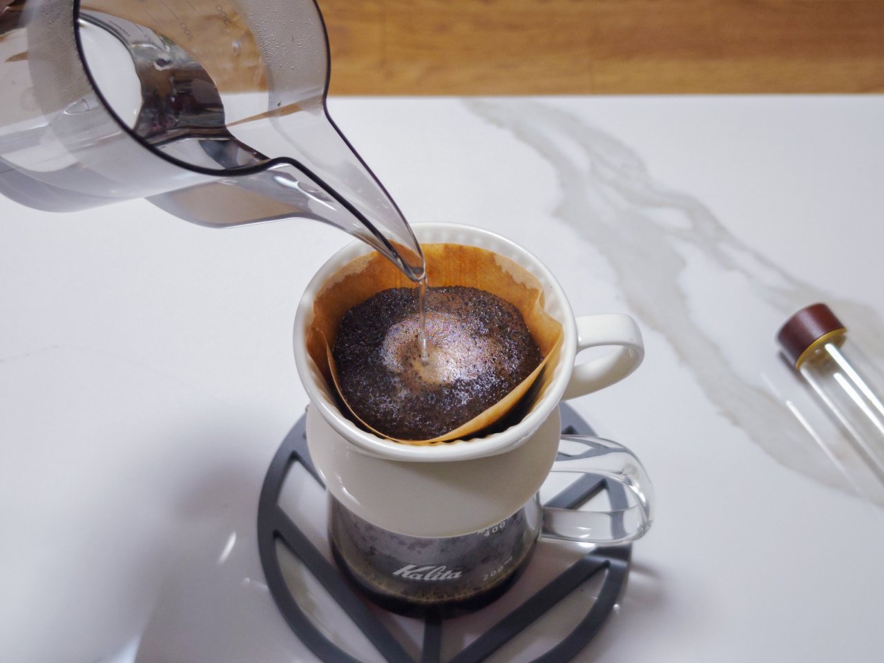 ドリップポッドとして致命的だと思うのですが、とにかく湯量コントロールが難しいです。一般的にコーヒーのドリップは細く一定の速度でお湯を注ぎますが、このドリップポッドはそれが超難しい。
