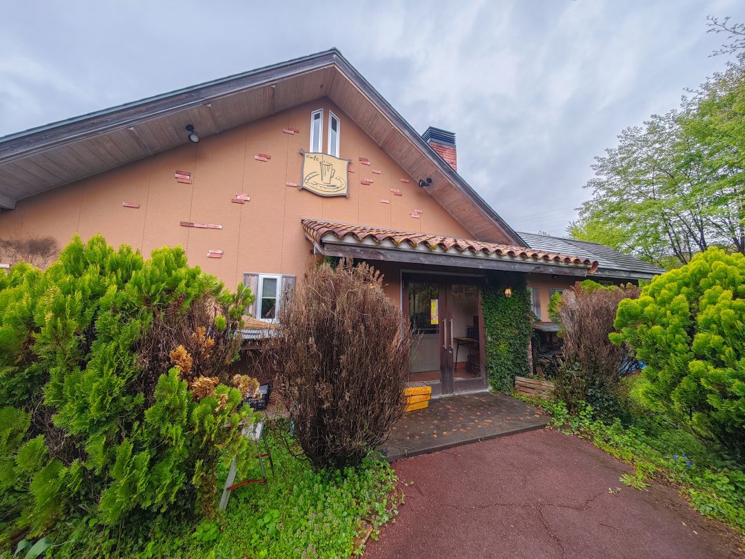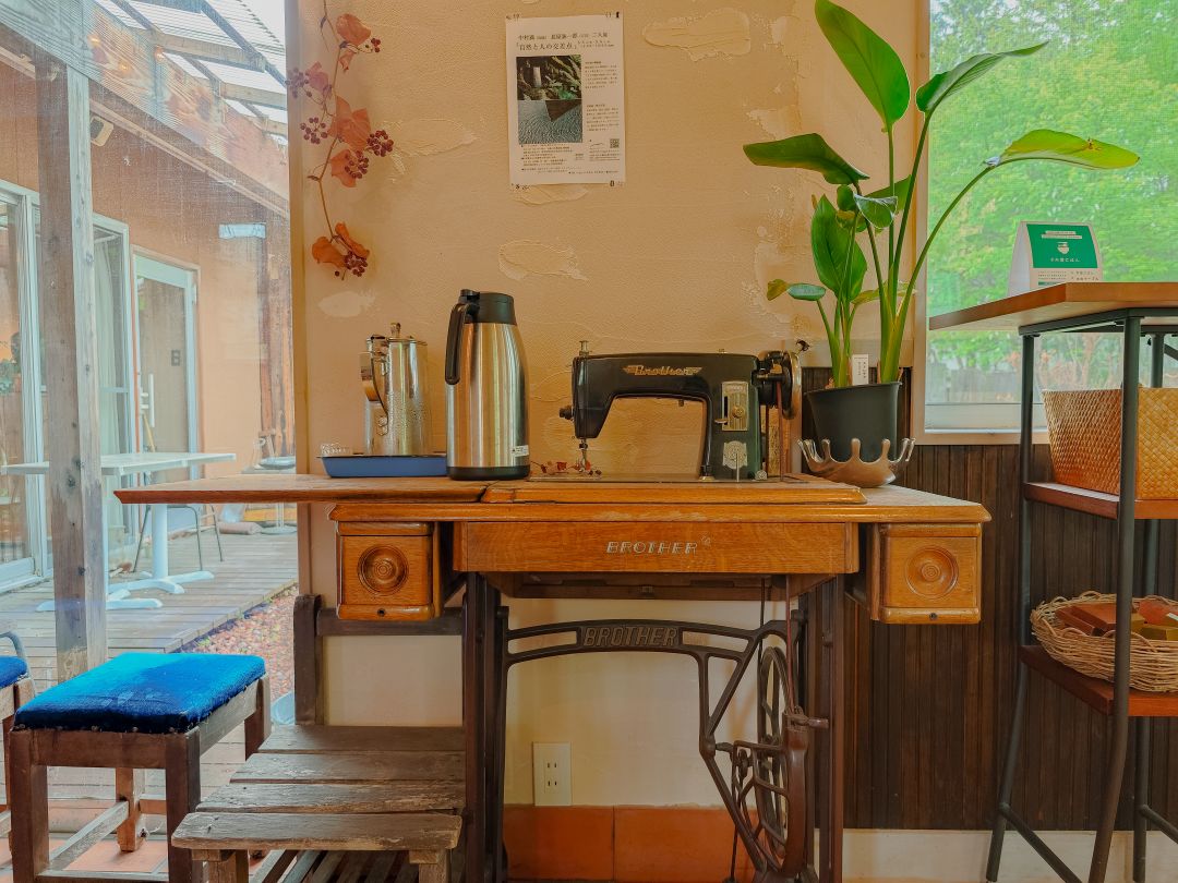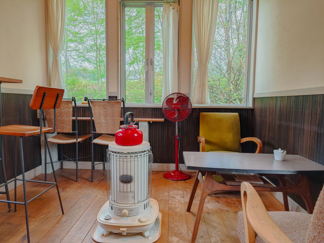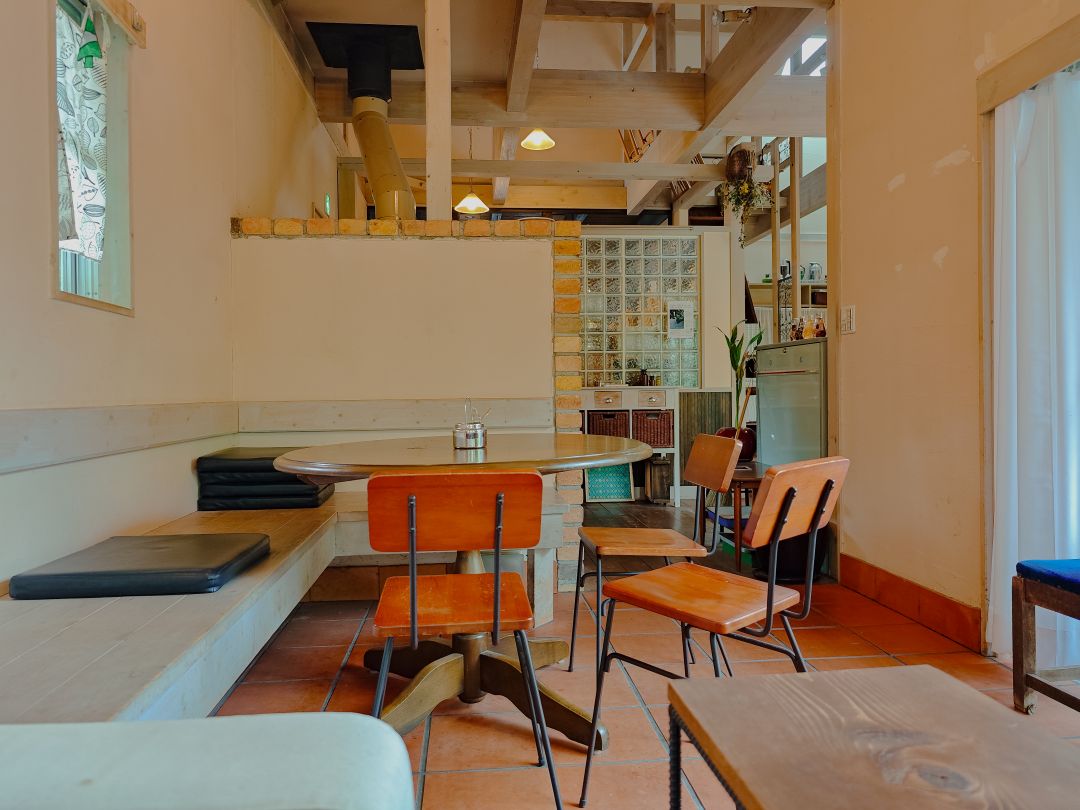 木曽駒高原への道中にひっそり佇むオレンジ色のカフェ。店内は素敵な調度品にあふれた木のぬくもりを感じるお店です。