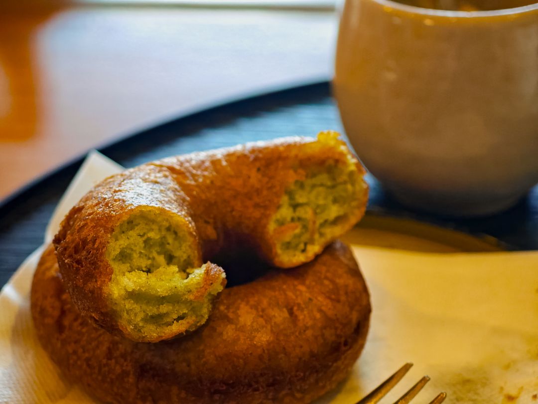 ドーナツの緑色は何が練りこまれているのか不明ですがこちらも美味しい。