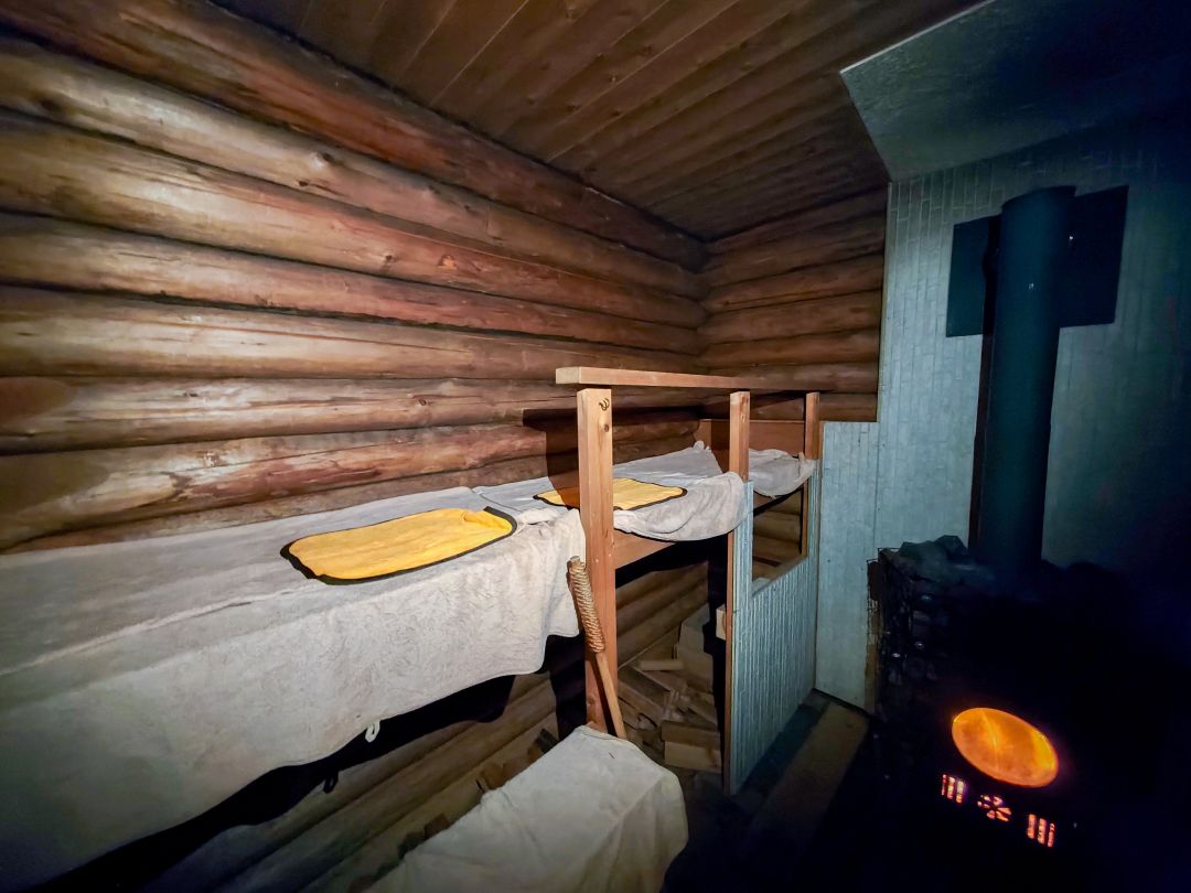 サウナは広々と寝られるスペースがあり、薪ストーブとロウリュで熱さを調整します。しっかり熱く、キンキンに冷えた川水風呂で極上のととのいが体験できます。