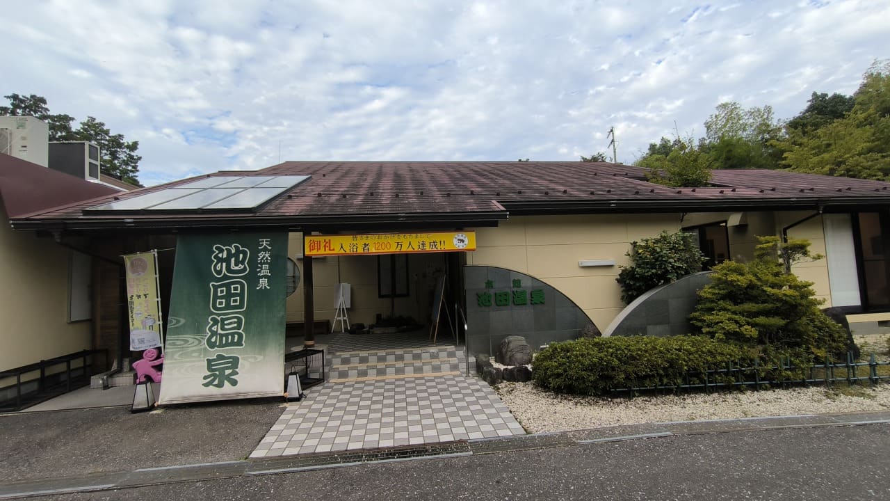 温泉成分が家庭浴槽に入浴剤約8袋分の濃さで、池田温泉は重曹以外の成分をほとんど含まない全国的にも珍しい純重曹の温泉です。重曹が皮膚の油脂分を乳化して石鹸に似た物質を作ることや、アルカリ性がたんぱく質を溶解したりするため、池田温泉特有の「つるすべ感」が得られます。実際に入ってみるとそのぬるぬるした水の肌触りがわかります。ちなみに郡上市の美人の湯として有名な「かみほの湯」もこれに近い感じでした。