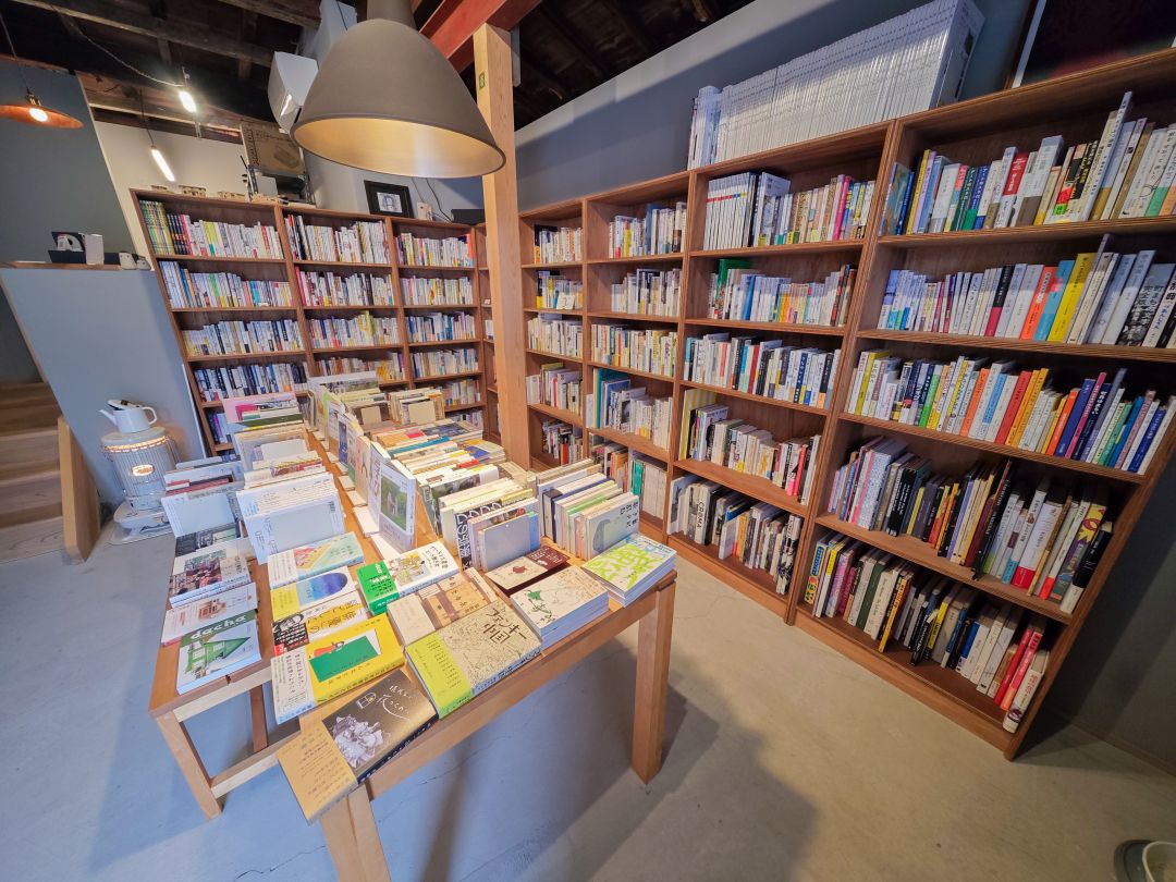 奥の壁際の棚は貸し本棚となっており、棚主ごとのセンスが光るバラエティ豊かな本だなです。