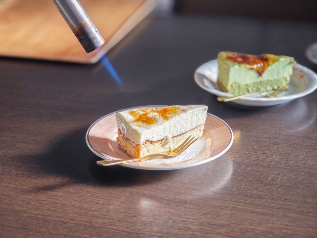 プリン、抹茶ミルクケーキ、炙りレアチーズケーキの3種スイーツセットはすべて手作り。少量でいろいろ味わえる系スイーツ大好きです。