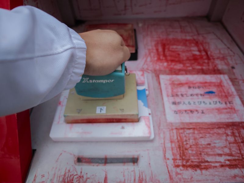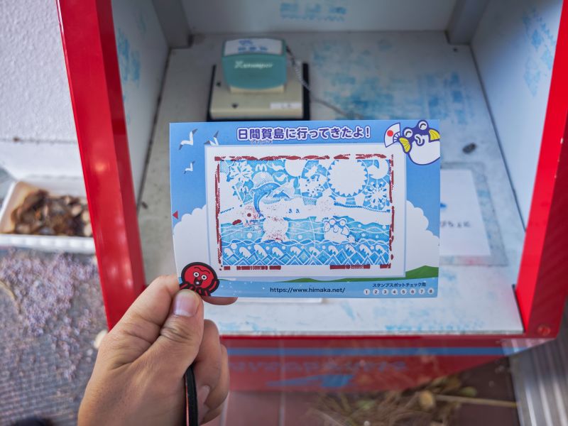 ちなみに、ひまポのスタンプは8か所目の最後のスタンプとして押印することを推奨。台紙にスタンプを重ねて絵柄を完成に近づけていきますが、ひまポ内のスタンプは絵柄の輪郭となっているので、最初に押してしまうとネタバレになります。