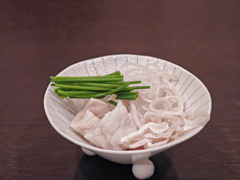 こりこりした食感のふぐの皮。これも味はほとんどないけど食感が良い。
