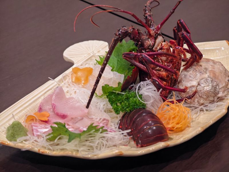 迫力ある伊勢海老のお造りで、刺身もほとんど白身であっさりしたセットでした。