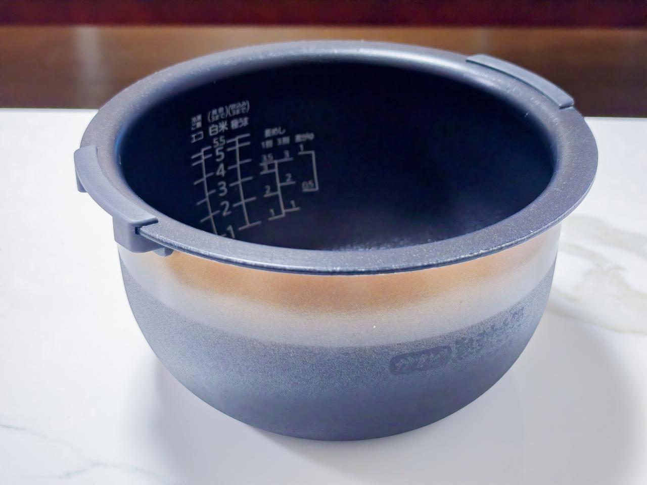 公式情報によると「熱風土鍋コーティングによる土鍋ご飯のような炊き上がり」とのこと。たしかに9層遠赤特厚釜(特厚3mm)はしっかり重厚で、均一に熱を加えてくれそうな品質に見えます。
