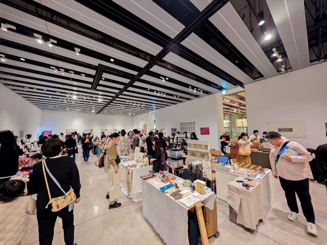 会場の様子。メディアコスモスのイベントフロアにて、ブースがロの字に展開されているので、中をぐるぐる回って見られます。かなり人が多く、私はじっくり90分滞在しましたが常に人の流れは絶えない印象でした。