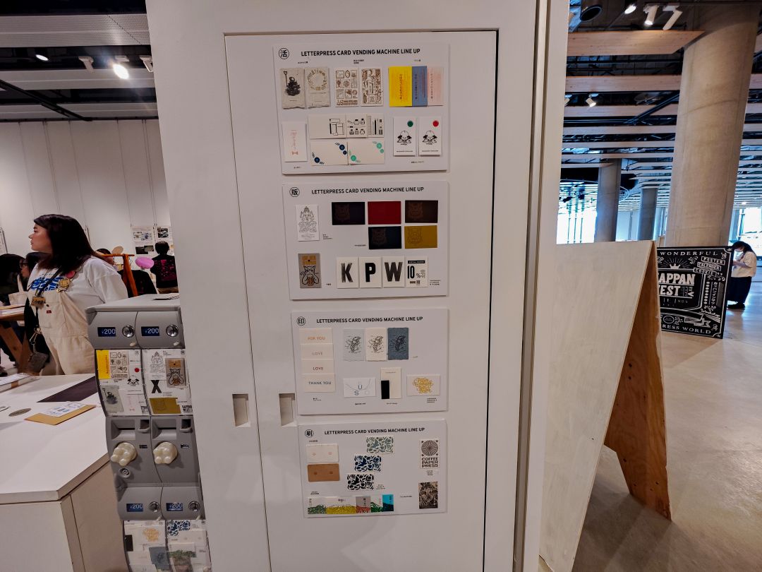 会場入り口付近で公式グッズが購入可能で、すぐそばに活版印刷カードのガチャガチャもあります。200円だったのでプチ土産にいいですね。
