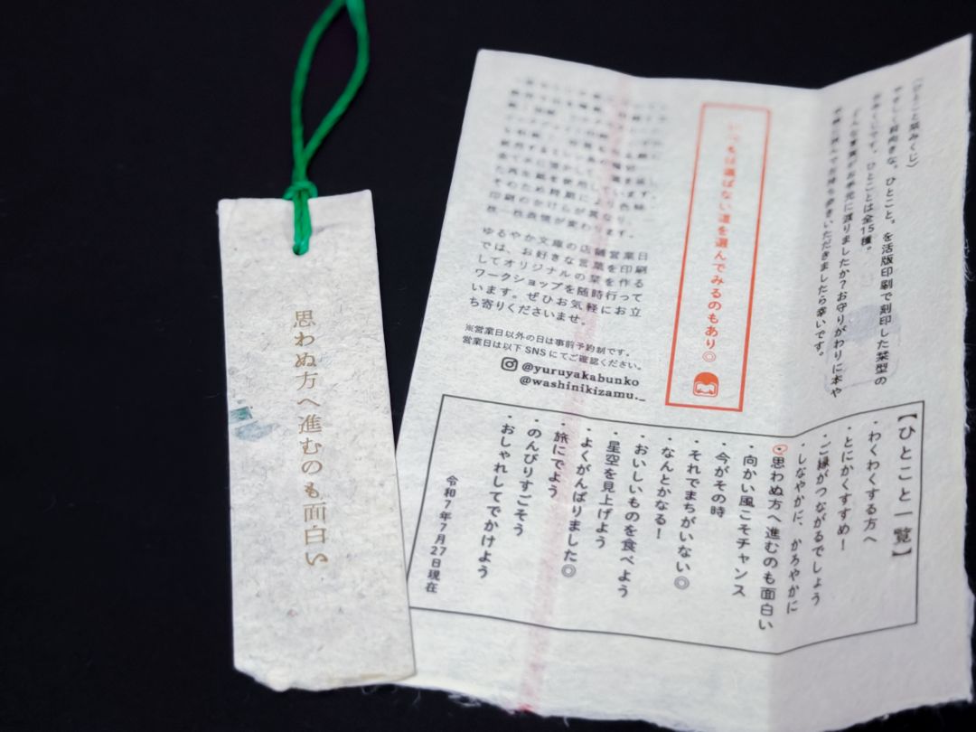 ひとこと栞みくじが楽しそうだったので1枚引いていきました。