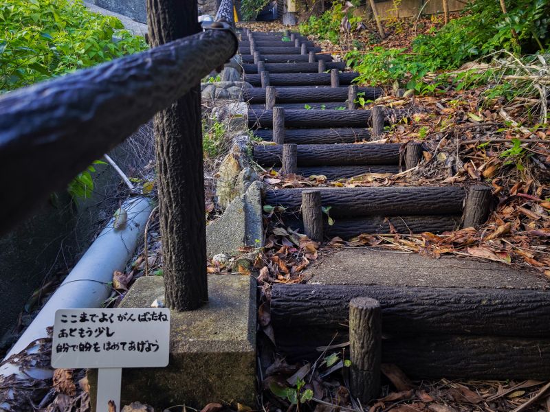 階段の途中にちょこちょこ設置された、一言メッセージ看板に励まされます。身軽ならいいのですが、私はスーツケースを含めた荷物が多かったので、だいぶ疲れました。