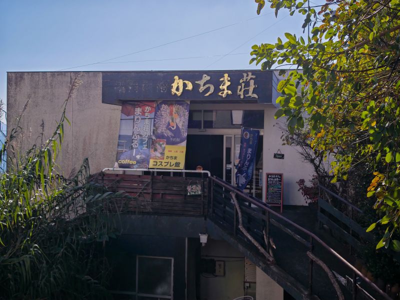 もくてきの場所が見えてきました。かちま荘は元の旅館の名前でしょう。