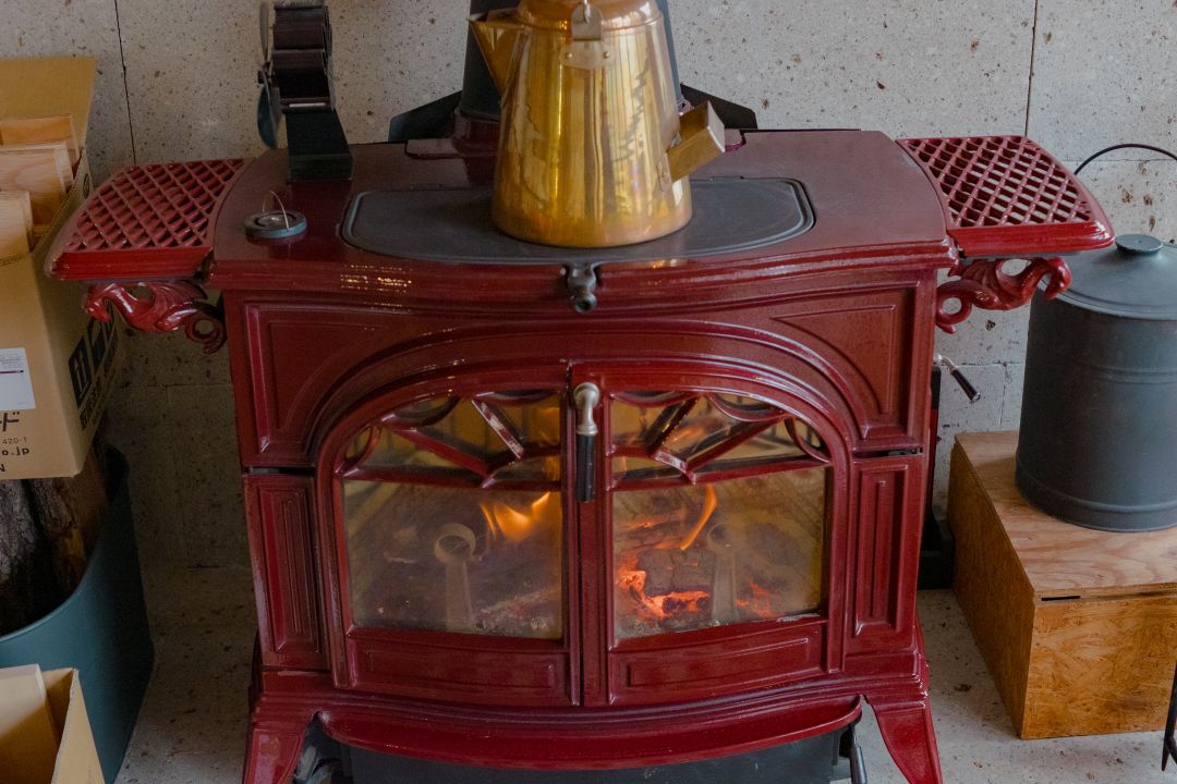 冬は薪ストーブが稼働していて、この炎の揺らぎを見ているだけでも癒されますね。