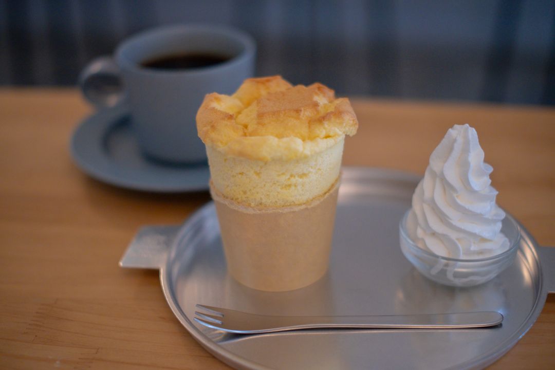 バランスの良いコーヒーに甘さ控えめのシフォンがぴったり。お好みでクリームをつけながら甘さを調整するのもいいですね。