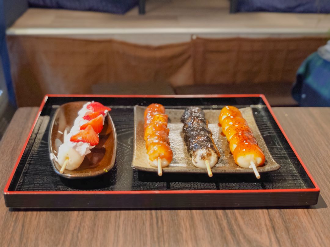 だんご3種と季節限定だんごをいただきました。くるみの団子は初めて食べましたが、とても美味しかったです。