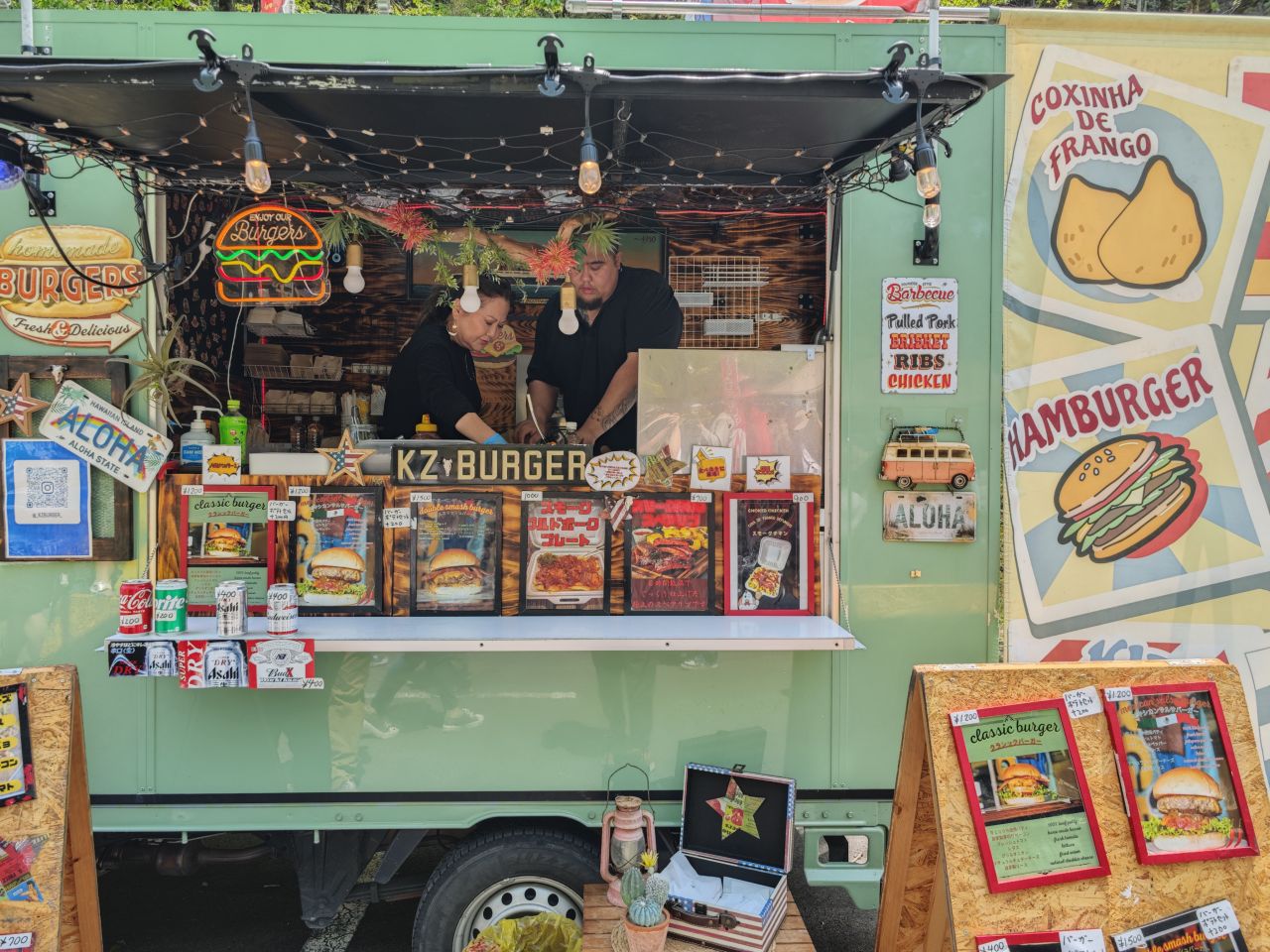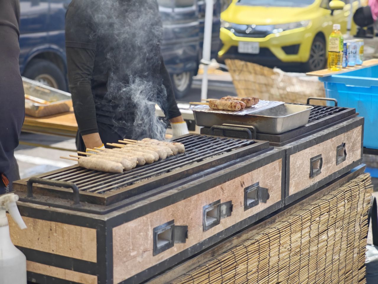 150mの屋台村に村内外からいくつものキッチンカーが集まって、けっこうな規模になっています。何を食べるかかなり迷うと思います。美味しそうな焼きものはタイミングによっては時間がかかるかも。