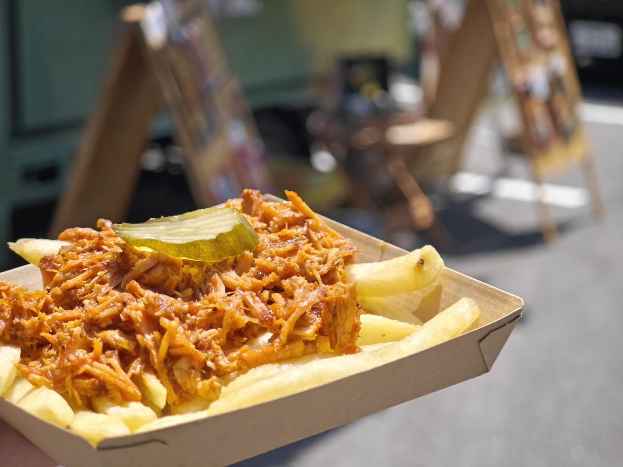 ファストフードチェーンのハンバーガーも好きですけど、やっぱりこのアメリカ本場のハンバーガーって感じがいい。グリルで焼いた肉々しい味とソースが美味しいです。プルドポークをのせたポテトもかなり美味しかったです。