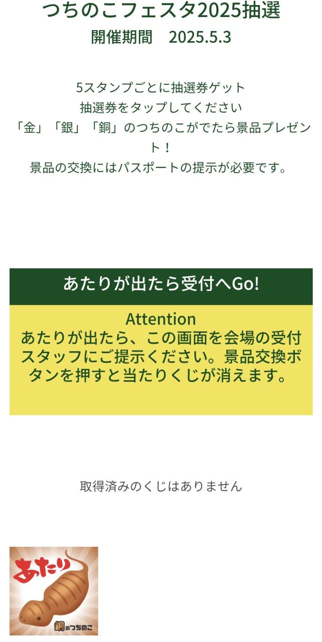 駐車場から会場までの道や会場内各地で全70か所に設置されたQRスタンプラリー。スタンプをすべて獲得すると景品ゲット&スタンプが5個たまるごとにデジタル抽選に挑戦できます。スタンプをすべて集めたら最大14回抽選できるわけで、私は銅賞×2と銀賞×1が当たりました。