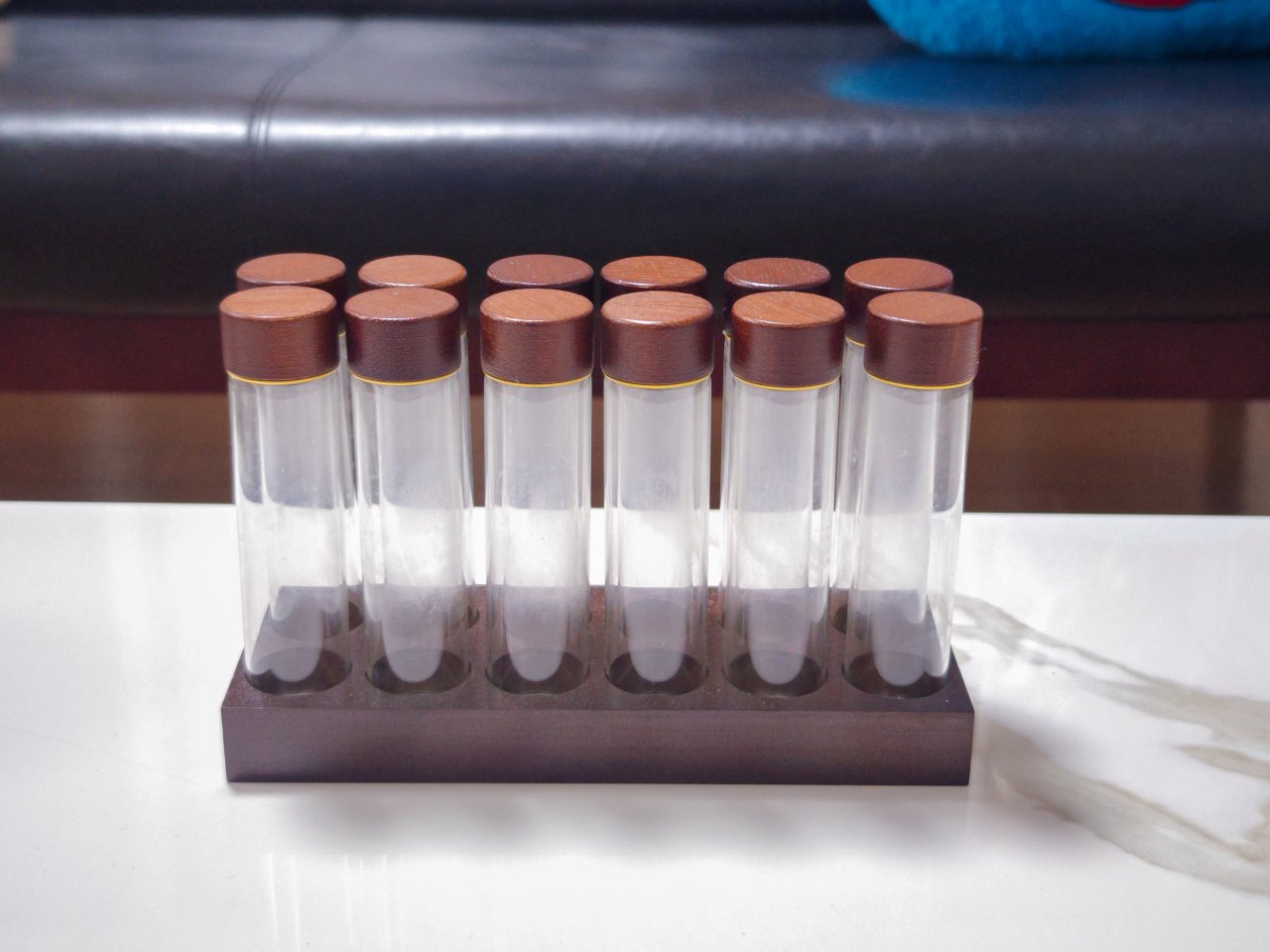 6穴タイプは1列になっており、木製の台座の幅が狭く倒れやすそうなので12穴タイプがおすすめ。g数は好きなほうを選べばいいですが、普段から豆の量多めの20gで抽出することが多いので大きい方を選びました。大は小を兼ねる。