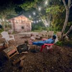 アディロンダック、ウッドチェア、切り株など。アウトドアならではの自然を感じるととのいスペースです。山のどこからか鹿の鳴き声が聞こえてきます。最近は熊の出没情報も聞くので、それだけちょっと怖いですけどね。