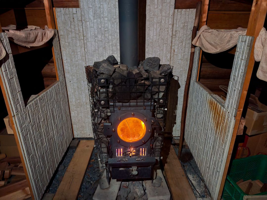 薪ストーブサウナはASPサウナの鈴ノ間で経験済みだったのでもう手慣れたものです。