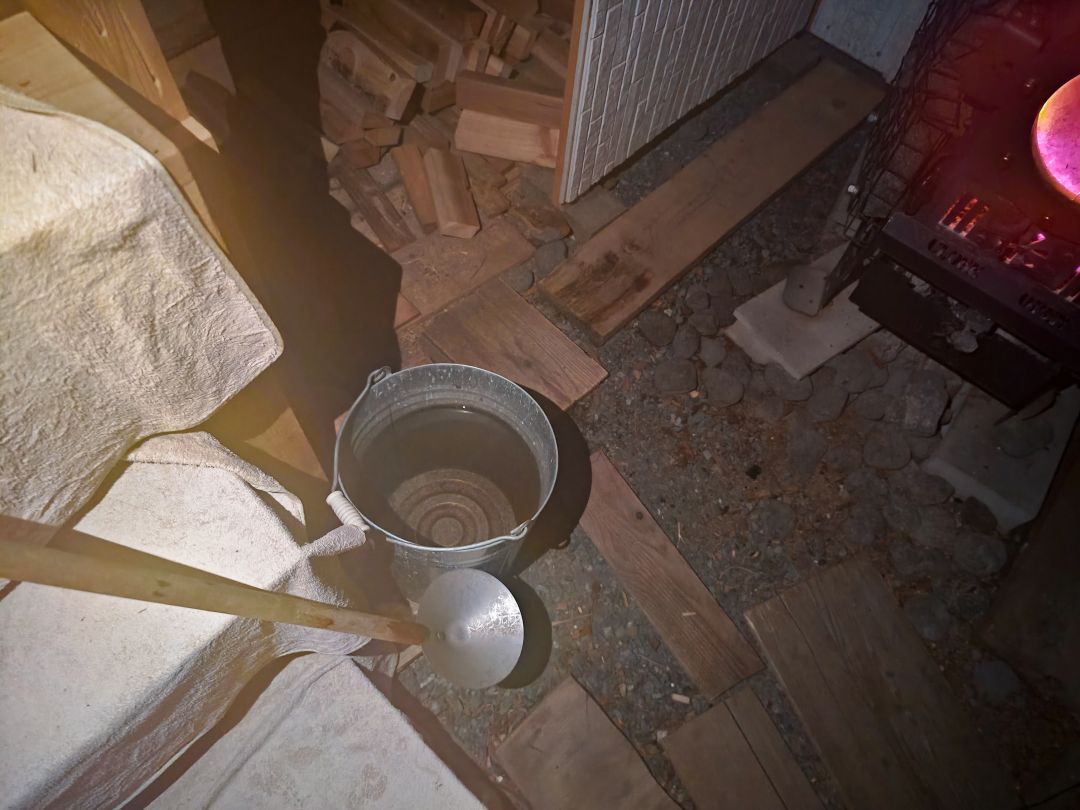 ポイントはサウナから出て水風呂に行く前に、あらかじめ薪を数本足しておくこと。次にサウナに入った時にしっかり温まっています。